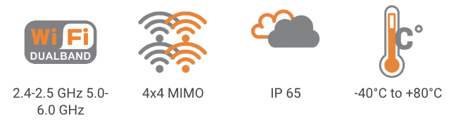 EPNT-1 включает четыре кросс-поляризованные антенны, что делает его идеальным для маршрутизаторов 4×4 MIMO или двойных 2×2 MIMO. Антенны обеспечивают широкополосное покрытие в диапазоне от 617 до 3800 МГц, что делает их идеальными для реализации LTE и 5G с пиковым коэффициентом усиления 5 дБи. EPNT-1 также включает две всенаправленные двухдиапазонные антенны Wi-Fi, которые покрывают диапазоны Wi-Fi 2,4 ГГц и 5-6 ГГц для 2×2 MIMO.