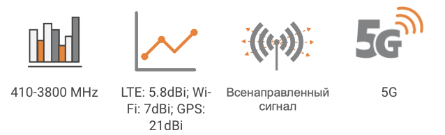 MIMO-3-15 - это высокопроизводительная многочастотная антенна 5 в 1 корпусе, обеспечивающая две сотовые, две Wi-Fi и GPS/ГЛОНАСС антенны. Две сотовые антенны MIMO (для 2G/3G/4G) охватывают современные диапазоны от 617 МГц до 2700 МГц, а также новые появляющиеся спектры LTE и 5G для диапазонов 450 МГц и 3,5 ГГц CBRS, которые становятся популярными среди различных международных операторов сотовых сетей. Сверхширокополосные характеристики антенны позволяют использовать ее для различных решений и готовы к будущим сотовым технологиям вплоть до 3,8 ГГц 5G. Антенна представляет собой две отдельные двухдиапазонные Wi-Fi антенны, обеспечивающие одновременную работу на частотах 2,4 ГГц и 5 ГГц на каждой антенне с возможностью 2×2 MIMO. Пятая антенна представляет собой высокопроизводительную активную систему GPS/ГЛОНАСС, работающую при температуре до -40°C. MIMO-3-15 превосходит характеристики большинства конкурентов благодаря вниманию к конструкции этой высокопроизводительной антенны.
