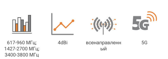 OMNI-214 гарантирует прием сигнала практически везде и может использоваться в любой части света. Сверхширокополосные характеристики делают антенну перспективной, поскольку она охватывает диапазон LTE Band 71 (617-698 МГц), а также диапазоны CBRS от 3400 до 3800 МГц для использования внутри страны.