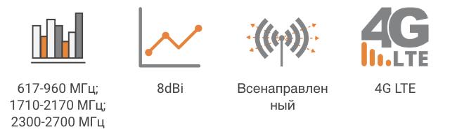 OMNI-292 -это всенаправленная антенна, которая охватывает все диапазоны частот сотовой связи необходимые для LTE (4G), а также диапазоны HSDPA, 3G, EDGE, GPRS, голосовой связи с частотой 2,4 ГГц LTE и Wi-Fi.