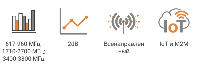 Постоянное усиление во всем диапазоне частот улучшает характеристики производительности LTE, такие как агрегация нескольких несущих (CA). Антенна идеально подходит для стационарных установок любых диапазонов сотовой связи. Также идеально подходит для работы с M2M и (IoT), которые обмениваются данными через сети GSM (GPRS/EDGE/ 3G/ HSPA/ LTE).